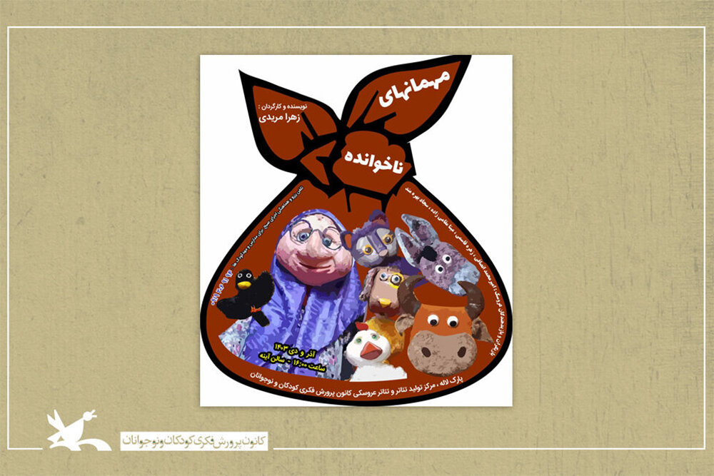 نمایش «مهمان‌های ناخوانده» از روز ۱۸ آذر ۱۴۰۳ساعت ۱۶ در سالن آینه مرکز تولید تئاتر و تئاتر عروسکی کانون پرورش فکری کودکان و نوجوانان واقع در پارک لاله تهران به روی صحنه می‌رود.