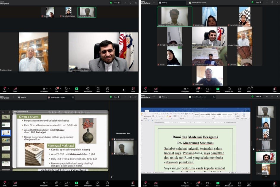 به همت رایزنی فرهنگی جمهوری اسلامی ایران در جاکارتا و با همکاری اتاق ایران دانشگاه حسنالدین ماکاسار، اتاق ایران در دانشگاه سونان گونونگ جاتی باندونگ، مرکز تحقیقات زبان فارسی در هند و مؤسسه رومی اندونزی، وبینار بینالمللی «مدارای دینی از دیدگاه مولانا جلالالدین بلخی» برگزار شد.