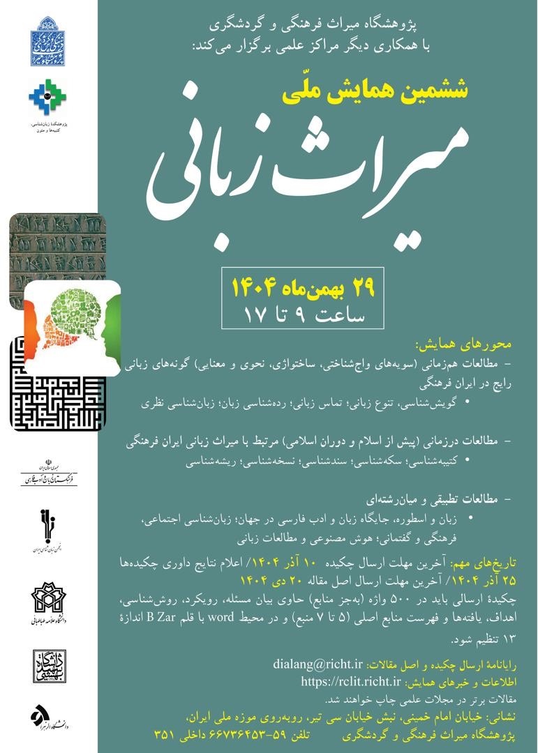 به گزارش میراثآریا، از تمامی پژوهشگران، استادان و دانشجویان گرامی برای ارسال چکیده و مشارکت در این رویداد علمی دعوت بهعمل میآید.