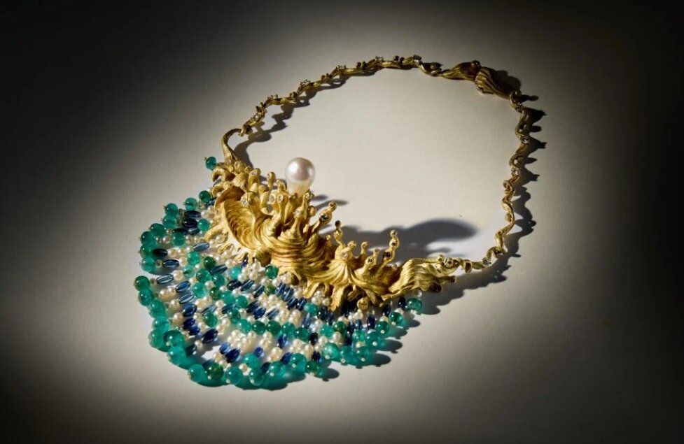 گردنبند «دریای مواج» اثر «سالوادور دالی» با طلای ۱۸ عیار به شکل امواج با صخرههای مرجانی طراحی شده و با الماس تزیین شده است. این اثر دوبرابر برآورد اولیه ۳۰۰,۰۰۰ یورویی خود فروخته شد و در حراج «سوررئالیسم و میراث آن» که توسط ساتبیز در ۲۴ اکتبر برگزار شد به قیمت ۷۳۶,۶۰۰ یورو (۸۵۸,۵۱۸ دلار) به فروش رسید.