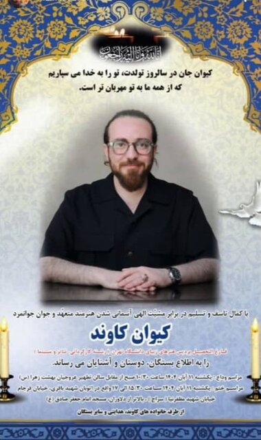 کیوان کاوند بازیگر جوان تئاتر که به دلیل عارضه مغزی از دنیا رفت، فردا ۱۱ آبان ماه به خاک سپرده میشود.