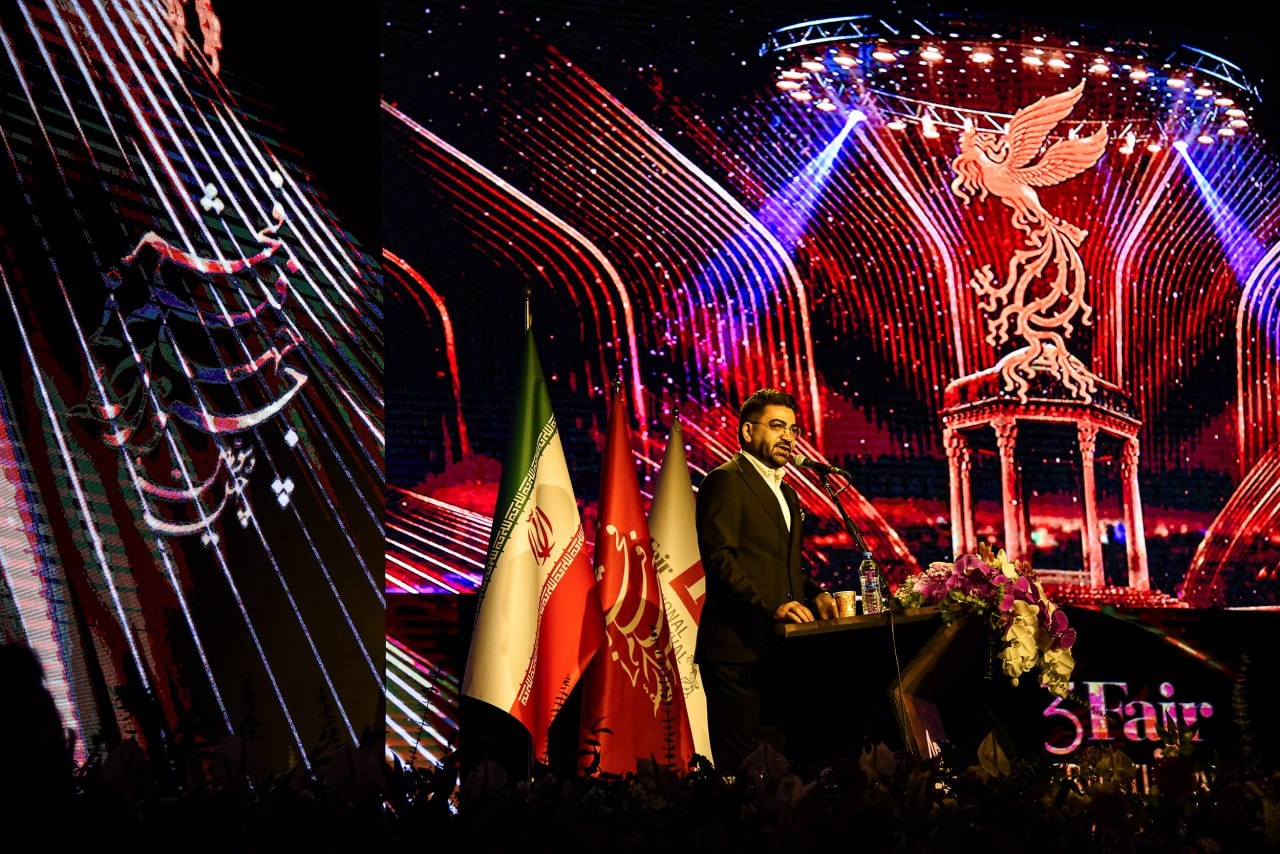 در ادامه مراسم سیدعباس صالحی وزیر فرهنگ روی صحنه آمد و گفت: جناب آقای وزیر فرهنگ و میراث ملی جمهوری اسلامی پاکستان، هیئتهای عالی سینمایی ۱۵ کشور، سفرای مقیم ایران و مهمانان گرامی از سراسر ایران و جهان، به ایران سرافراز و شیراز زیبا خوش آمدید. جشنواره جهانی فیلم فجر فرصتی است برای یادآوری هنری که سالهاست «دیدن» و «متفاوت دیدن» را آموخته است؛ هنری که به ما جرأت تخیل میدهد، روایت را در قاب معنا مینشاند و میان تاریکی سالن و روشنی پرده، تجربهای مشترک میآفریند. سینما بیش از آنکه صنعتی بزرگ باشد، لحظهای انسانی است؛ لحظهای که حقیقت، رؤیا و نگاه آدمی را در کنار هم مینشاند و راهی تازه برای فهم خود و دیگری میگشاید و سینمای شاعرانه ایران دریچهای به این منظرههاست.